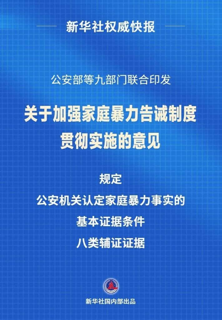近日,公安部、中央政法委、最高人民法院、教育部、民政部、司法部、國家衛(wèi)生健康委、全國婦聯(lián)、國務(wù)院婦兒工委辦聯(lián)合印發(fā)《關(guān)于加強(qiáng)家庭暴力告誡制度貫徹實(shí)施的意見》。