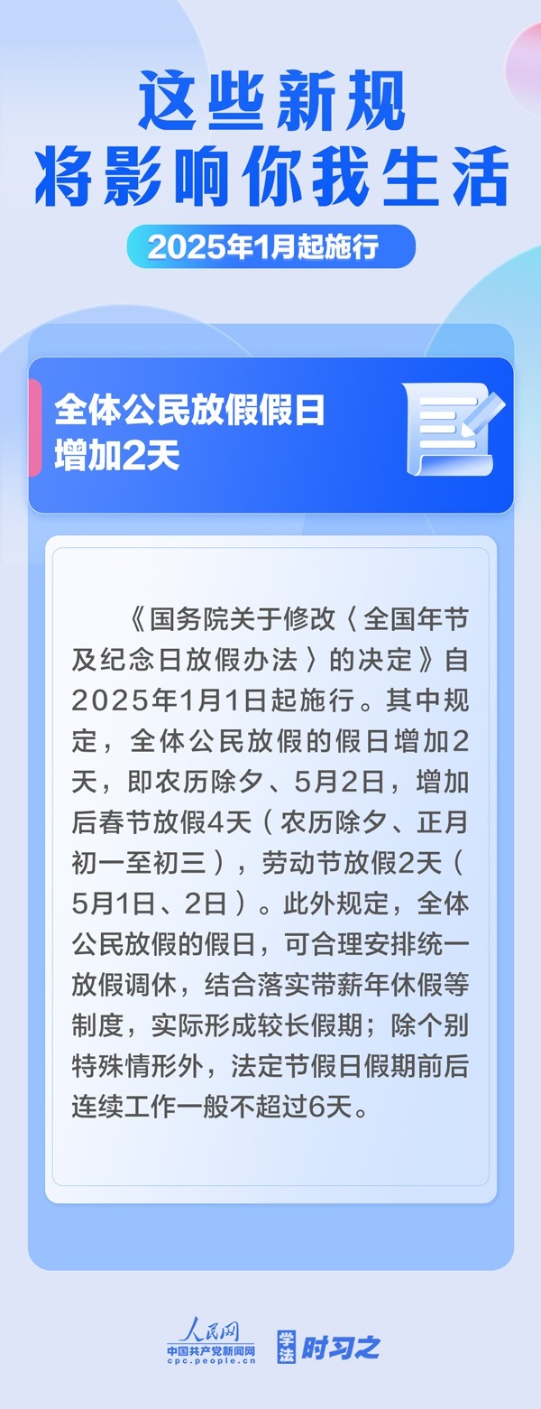明確不授予學(xué)位或者撤銷學(xué)位的三種情形;支持優(yōu)先開發(fā)利用可再生能源;漸進(jìn)式延遲法定退休年齡;完善自然科學(xué)基金資助制度……2025年1月起,這些新規(guī)施行,將影響你我生活。