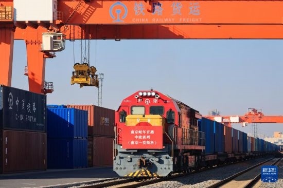 當(dāng)日是農(nóng)歷大年初一,一列滿(mǎn)載110標(biāo)箱紡織品、汽車(chē)配件、電子機(jī)械設(shè)備等貨物的中歐班列從南京鐵路物流中心堯化門(mén)站貨場(chǎng)啟程,開(kāi)往俄羅斯莫斯科。這是農(nóng)歷新年南京開(kāi)出的首趟中歐班列。
