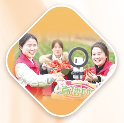 浙江省長興縣畫溪街道,青年黨員干部通過網(wǎng)絡(luò)直播幫農(nóng)戶銷售新鮮草莓。