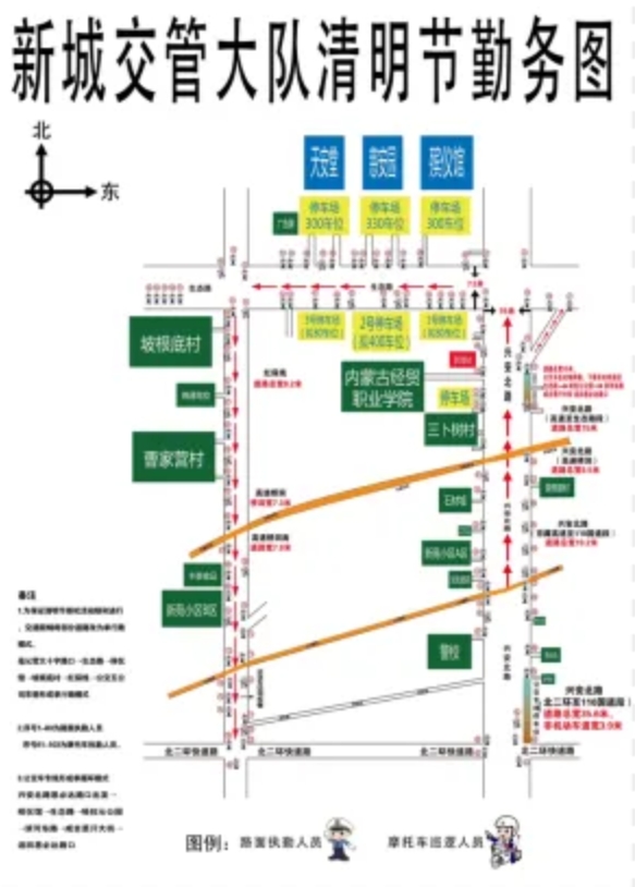 清明節(jié)假期新城區(qū)紅保線將實(shí)行單向通行。4 月 4 日至 4 月 6 日每日 6 點(diǎn)-14 點(diǎn)紅保線將實(shí)行單向通行,祭掃市民可從呼哈線紅保線交匯處經(jīng)過原呼和浩特市殯儀館、慈安園 、天安堂至坡根底村處向南行駛可返回市區(qū),Y371(省道104至野馬圖路)調(diào)整為單行,只能由西向東行駛。同時建議市民盡量選擇公交車等綠色出行方式,乘坐公交車36路58路在國家北方足球訓(xùn)練基地下車即可。