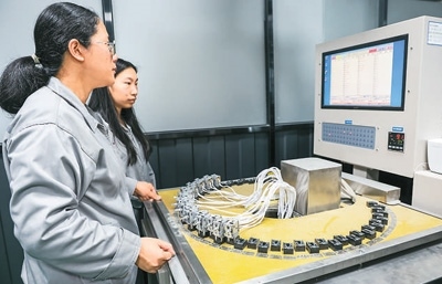 加強(qiáng)食品安全監(jiān)管,為冷鏈設(shè)備制造企業(yè)帶來了發(fā)展機(jī)遇。圖為西科冷鏈江門制造基地的產(chǎn)品實驗室工程師在進(jìn)行電子元件耐用性測試。