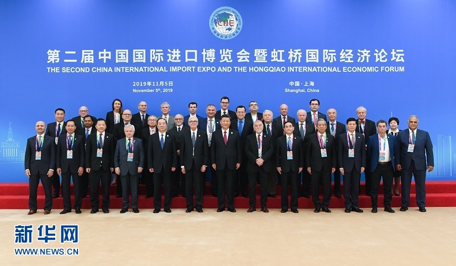 開幕式前,習(xí)近平同外方領(lǐng)導(dǎo)人集體合影,并親切會見世界500強(qiáng)企業(yè)家代表、出席“70年中國發(fā)展與人類命運(yùn)共同體”論壇外方智庫媒體代表、出席世貿(mào)組織小型部長會議外方部長和代表團(tuán)團(tuán)長。
