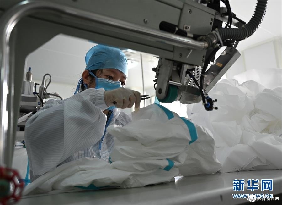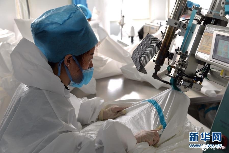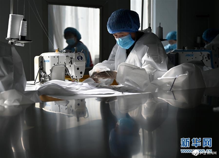 呼和浩特欣龍康醫(yī)療器械有限責(zé)任公司是一家員工不足20人的小型企業(yè),也是內(nèi)蒙古為數(shù)不多能生產(chǎn)醫(yī)用防護(hù)服的企業(yè)之一。新冠肺炎疫情發(fā)生后,公司從1月24日(除夕)就組織員工復(fù)產(chǎn),24小時連續(xù)作業(yè),生產(chǎn)無菌醫(yī)用防護(hù)服和隔離服。目前,該企業(yè)每天生產(chǎn)防護(hù)服約400套,全部用于內(nèi)蒙古防治新冠肺炎的一線醫(yī)護(hù)人員。 新華社記者 徐欽 攝