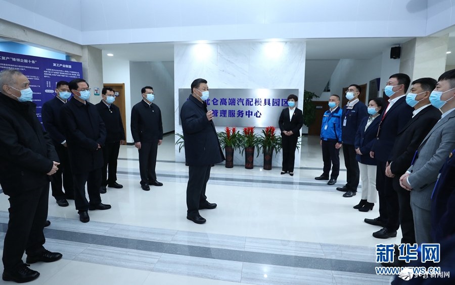 3月29日至4月1日,中共中央總書記、國(guó)家主席、中央軍委主席習(xí)近平在浙江考察。這是3月29日,習(xí)近平在寧波北侖大碶高端汽配模具園區(qū)考察中小型民營(yíng)制造業(yè)企業(yè)寧波臻至機(jī)械模具有限公司,聽(tīng)取企業(yè)生產(chǎn)經(jīng)營(yíng)及復(fù)工復(fù)產(chǎn)情況介紹。 新華社記者 鞠鵬 攝