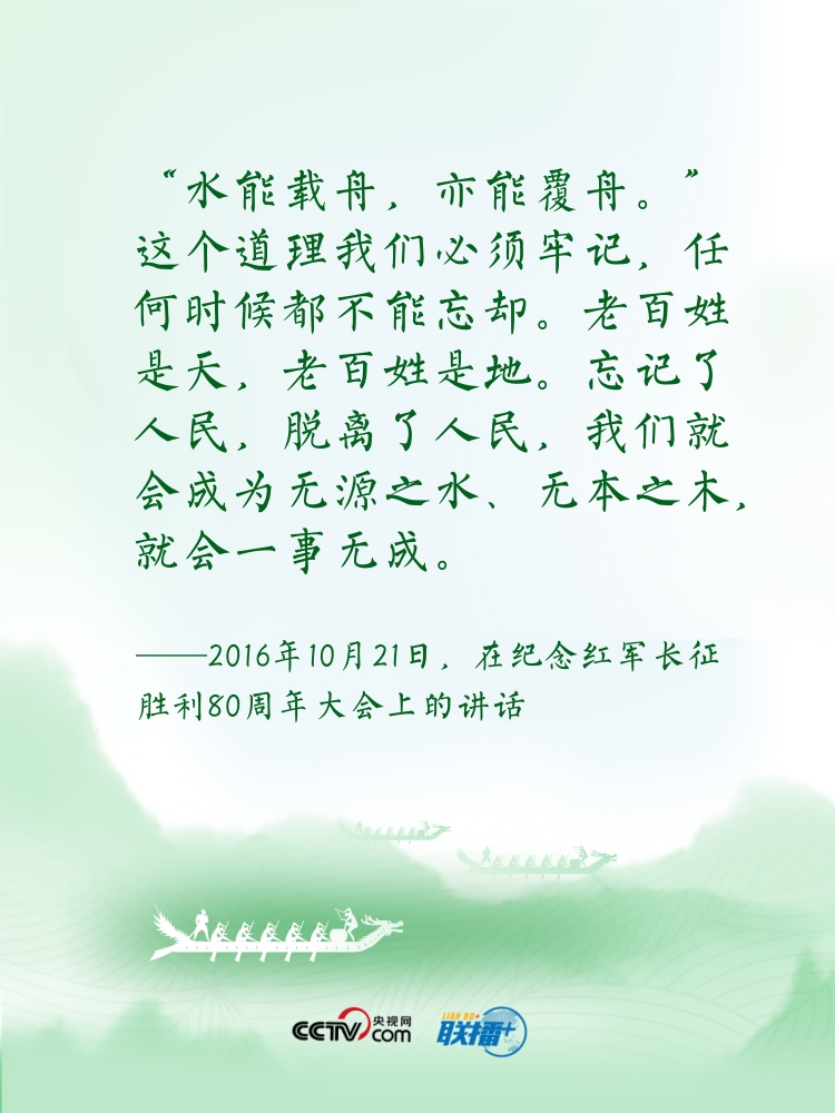 過端午,賽龍舟。龍舟這項(xiàng)傳統(tǒng)運(yùn)動(dòng),象征著中華民族的拼搏、堅(jiān)韌、團(tuán)結(jié),承載著深植在民族基因里的愛國主義之魂?!爸邸弊肿怨乓詠碓谥腥A傳統(tǒng)文化中都有著深刻寓意?!耙浪兄郏艺\為民”“逆水行舟,不進(jìn)則退”......習(xí)近平總書記曾多次以“舟”為喻闡釋思想,寄情言志。央視網(wǎng)《聯(lián)播+》特進(jìn)行梳理,讓我們沿著總書記指引的方向,團(tuán)結(jié)奮進(jìn),砥礪前行?! ?/p>