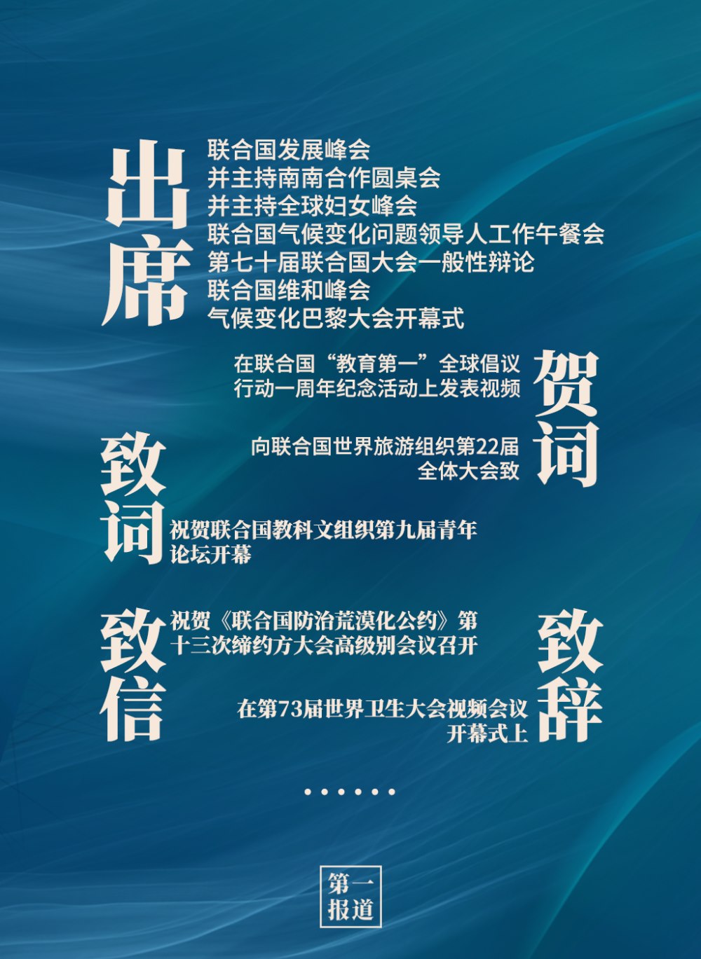 2013年以來,習主席通過出席聯(lián)合國活動、向聯(lián)合國活動致信函等方式,進一步深化中國同聯(lián)合國的合作,為維護世界和平、促進共同繁榮、完善全球治理貢獻中國智慧,注入中國動力。