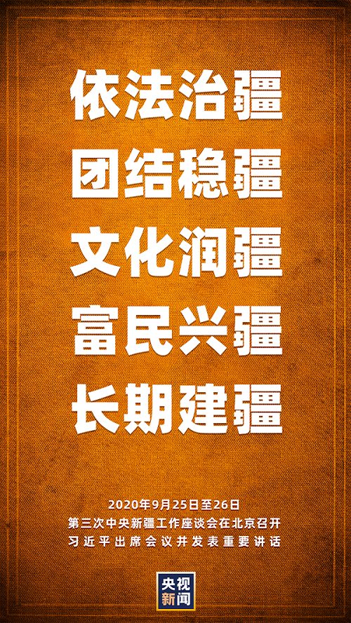 第三次中央新疆工作座談會(huì)9月25日至26日在北京召開。中共中央總書記、國家主席、中央軍委主席習(xí)近平出席會(huì)議并發(fā)表重要講話。
