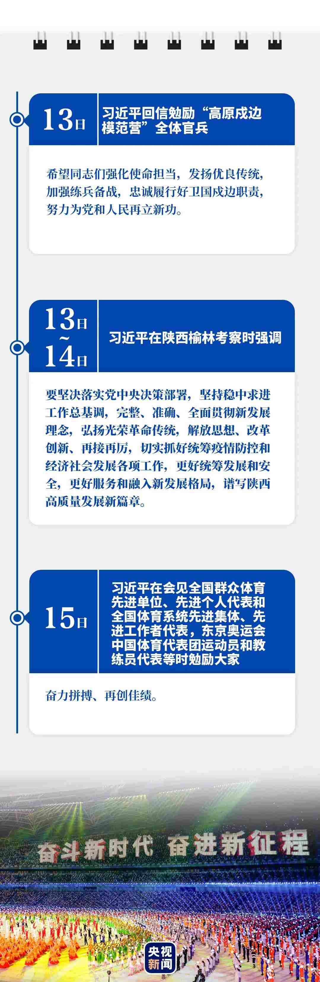 剛剛過(guò)去的9月,給人民英雄敬獻(xiàn)花籃,緬懷英烈、表達(dá)哀思;赴革命舊址考察,強(qiáng)調(diào)堅(jiān)守信仰、堅(jiān)定信念;出席重要會(huì)議,擘畫(huà)為黨育人、為國(guó)育才;開(kāi)展多次“云外交”活動(dòng),主張講信修睦、合作共贏……習(xí)近平行程滿(mǎn)滿(mǎn),話語(yǔ)鏗鏘。