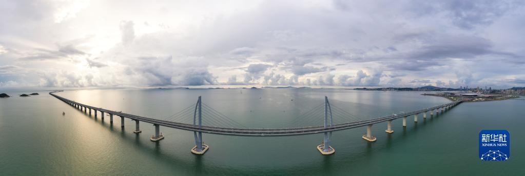 這是2020年9月12日拍攝的港珠澳大橋(無(wú)人機(jī)全景照片)。新華社記者陳曄華攝