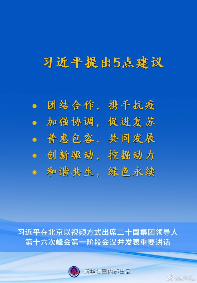 國家主席習(xí)近平10月30日在北京以視頻方式出席二十國集團(tuán)領(lǐng)導(dǎo)人第十六次峰會(huì)第一階段會(huì)議并發(fā)表重要講話。講話有哪些要點(diǎn),一起來看↓