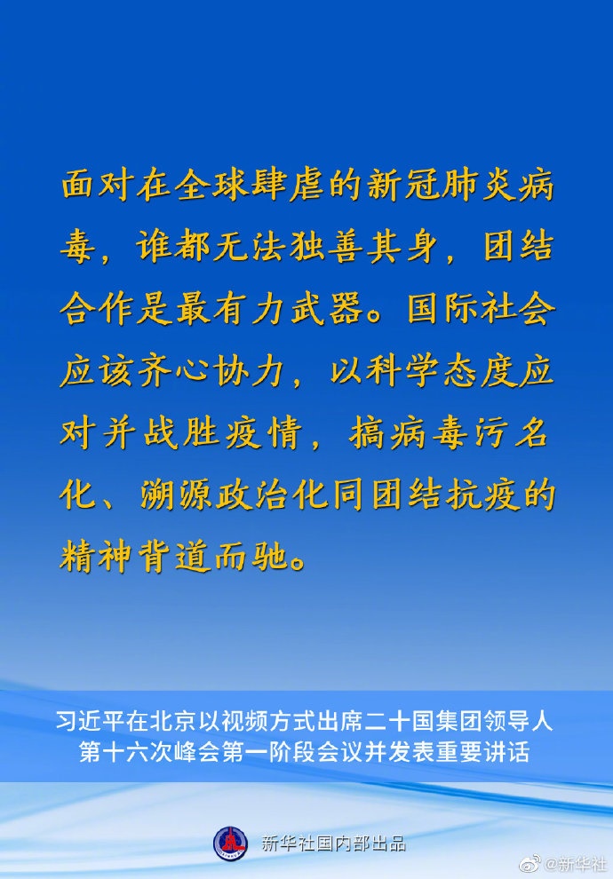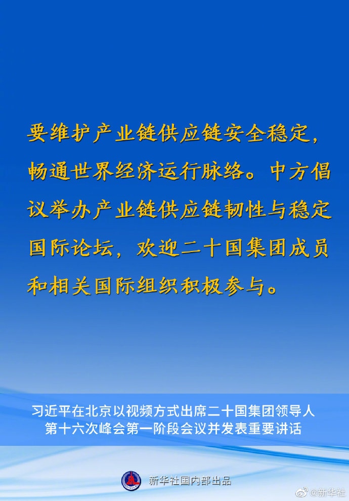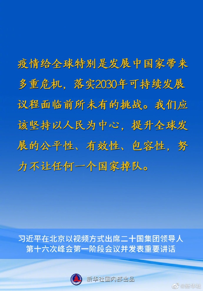 習(xí)近平主席在二十國集團(tuán)領(lǐng)導(dǎo)人第十六次峰會(huì)第一階段會(huì)議上的重要講話要點(diǎn)速覽