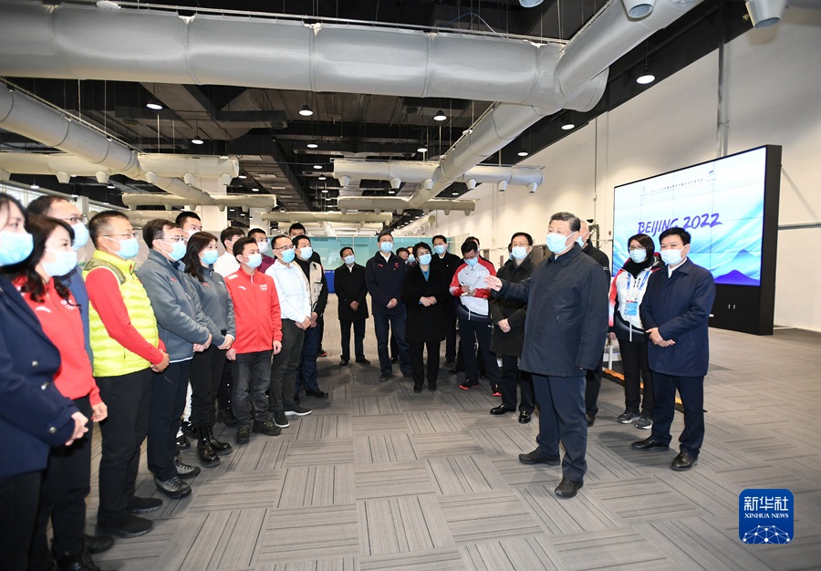 1月4日,中共中央總書記、國家主席、中央軍委主席習(xí)近平在北京考察2022年冬奧會、冬殘奧會籌辦備賽工作。這是4日下午,習(xí)近平在二七廠冰雪項(xiàng)目訓(xùn)練基地速滑館,向參訓(xùn)運(yùn)動員、教練員表示慰問。新華社記者 謝環(huán)馳 攝