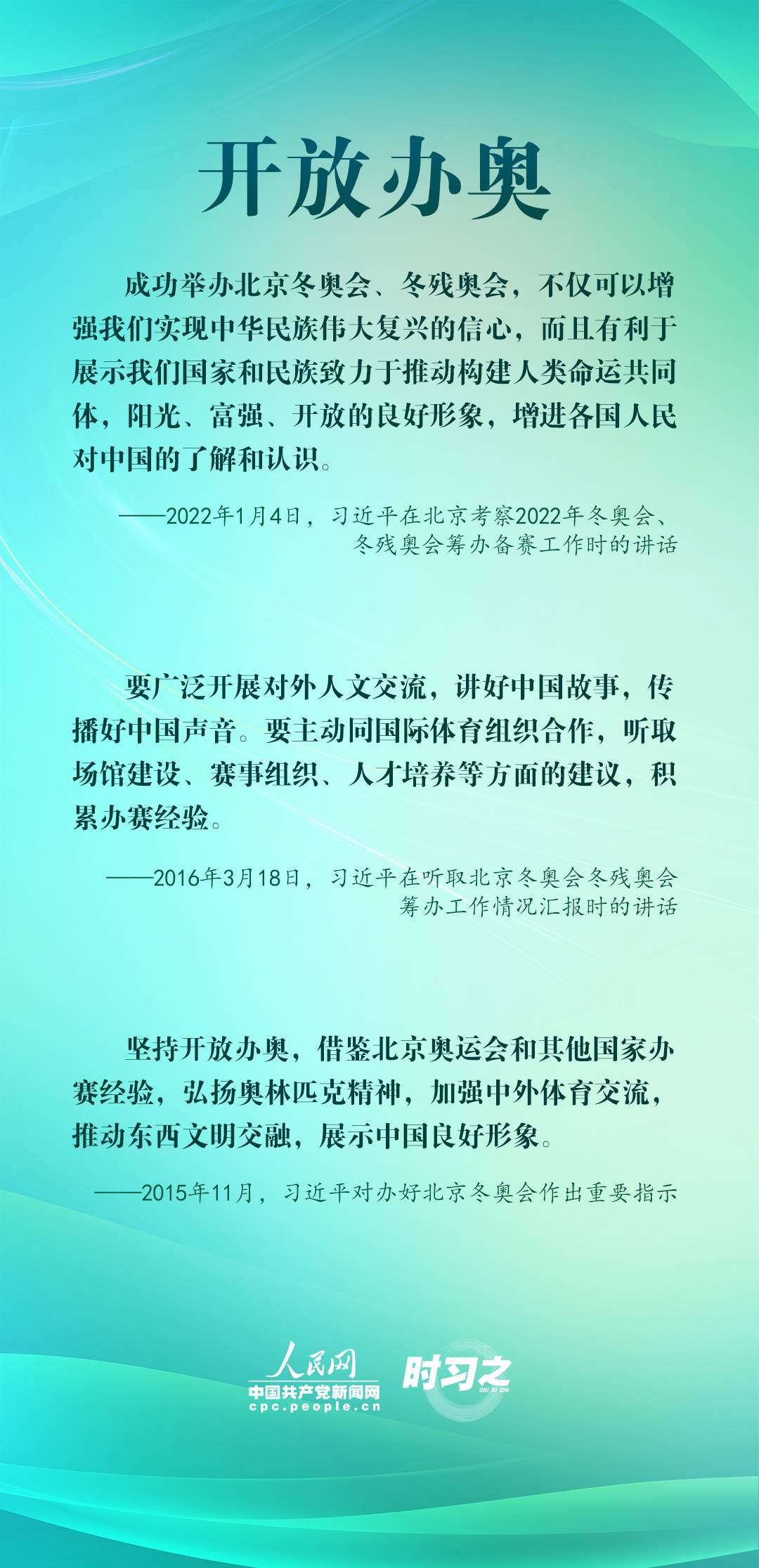 1月4日,習近平在北京考察2022年冬奧會、冬殘奧會籌辦備賽工作,指出“要堅持綠色辦奧、共享辦奧、開放辦奧、廉潔辦奧的理念,突出科技、智慧、綠色、節(jié)儉特色”。辦好北京冬奧會、冬殘奧會,是中國向國際社會作出的莊嚴承諾。習近平多次調研并強調綠色、共享、開放、廉潔的辦奧理念。