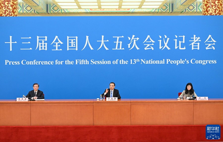 3月11日上午,十三屆全國人大五次會議在北京人民大會堂舉行記者會,國務院總理李克強應大會發(fā)言人張業(yè)遂的邀請出席記者會,并回答中外記者提問。新華社記者 李鑫 攝