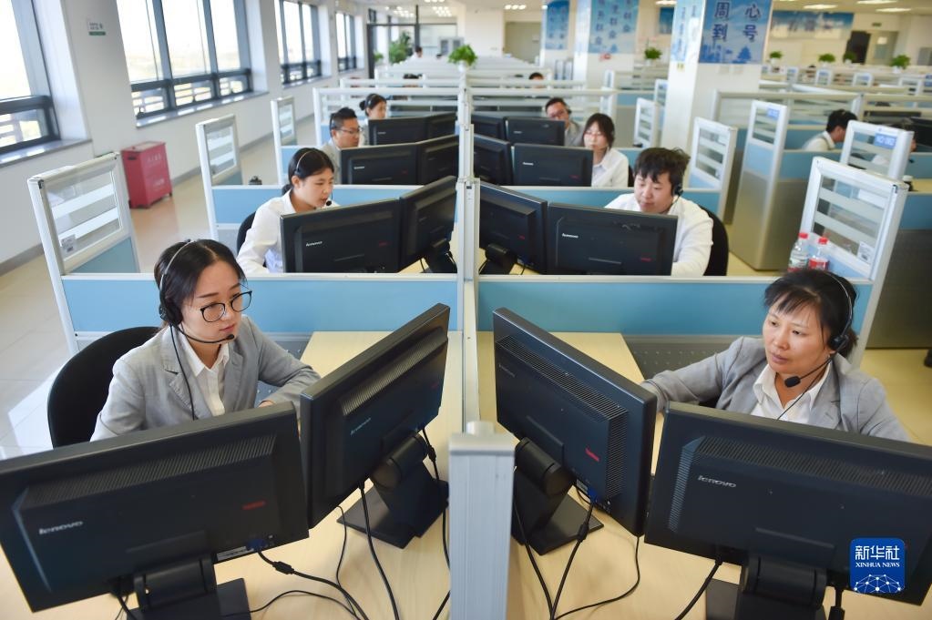 在位于北京亦莊的12345市民熱線話務大廳,工作人員接聽熱線電話(2019年11月13日攝)。 新華社記者 彭子洋 攝