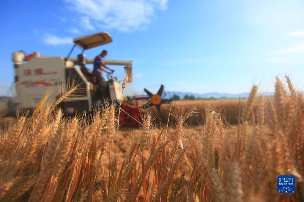山東省臨沂市平邑縣農(nóng)民駕駛收割機在田間收獲小麥(2021年6月8日攝)。 新華社發(fā)(武紀全攝)