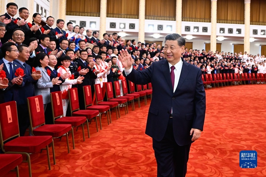 4月8日,北京冬奧會(huì)、冬殘奧會(huì)總結(jié)表彰大會(huì)在北京人民大會(huì)堂隆重舉行。會(huì)前,習(xí)近平等會(huì)見北京冬奧會(huì)、冬殘奧會(huì)突出貢獻(xiàn)集體代表、突出貢獻(xiàn)個(gè)人和中國體育代表團(tuán)成員。新華社記者 李學(xué)仁 攝