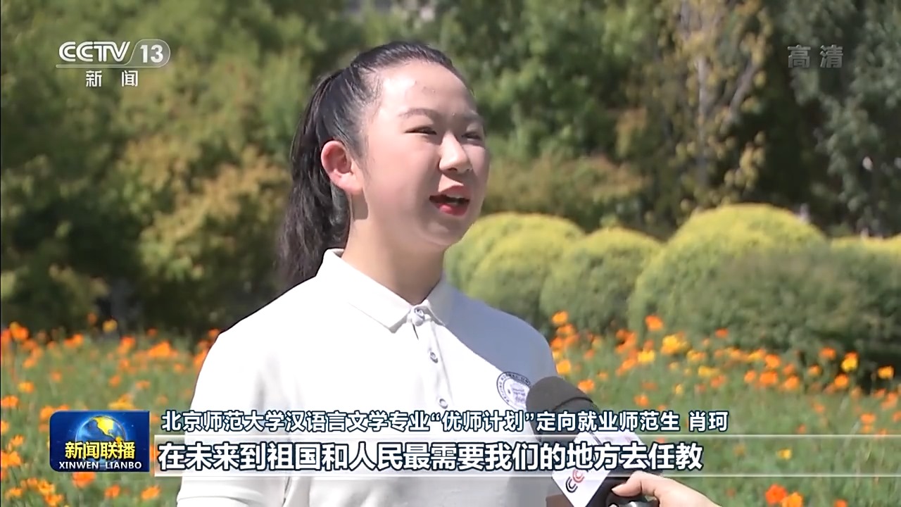 北京師范大學漢語言文學專業(yè)“優(yōu)師計劃”定向就業(yè)師范生肖珂:總書記勉勵我們增長傳道授業(yè)解惑本領,在未來到祖國和人民最需要我們的地方去任教。我定不負囑托,努力學習,在畢業(yè)后回到我的家鄉(xiāng)。