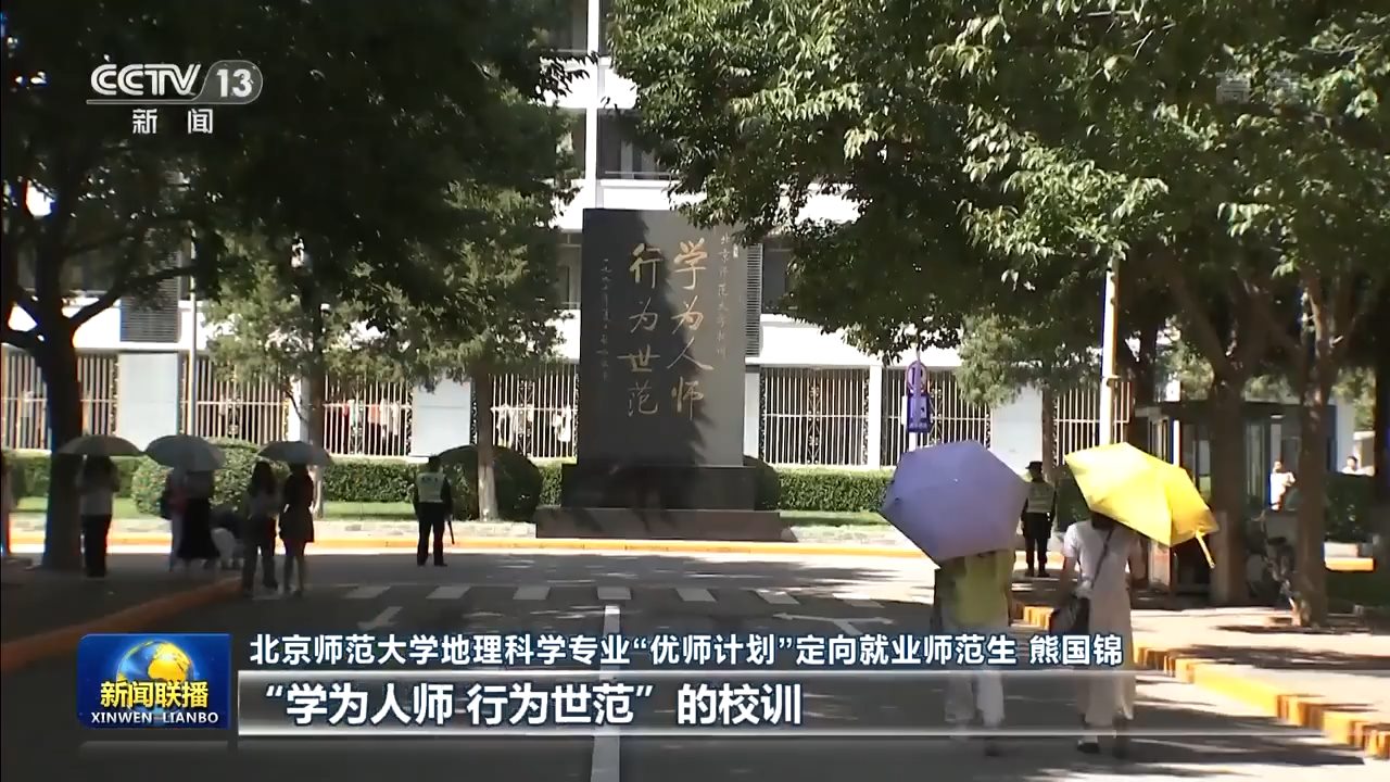北京師范大學地理科學專業(yè)“優(yōu)師計劃”定向就業(yè)師范生熊國錦:總書記在回信中說,希望我們繼續(xù)秉持“學為人師行為世范”的校訓,努力成長為黨和人民滿意的“四有”好老師,這讓我真切地感受到總書記對我們的關懷與期望。