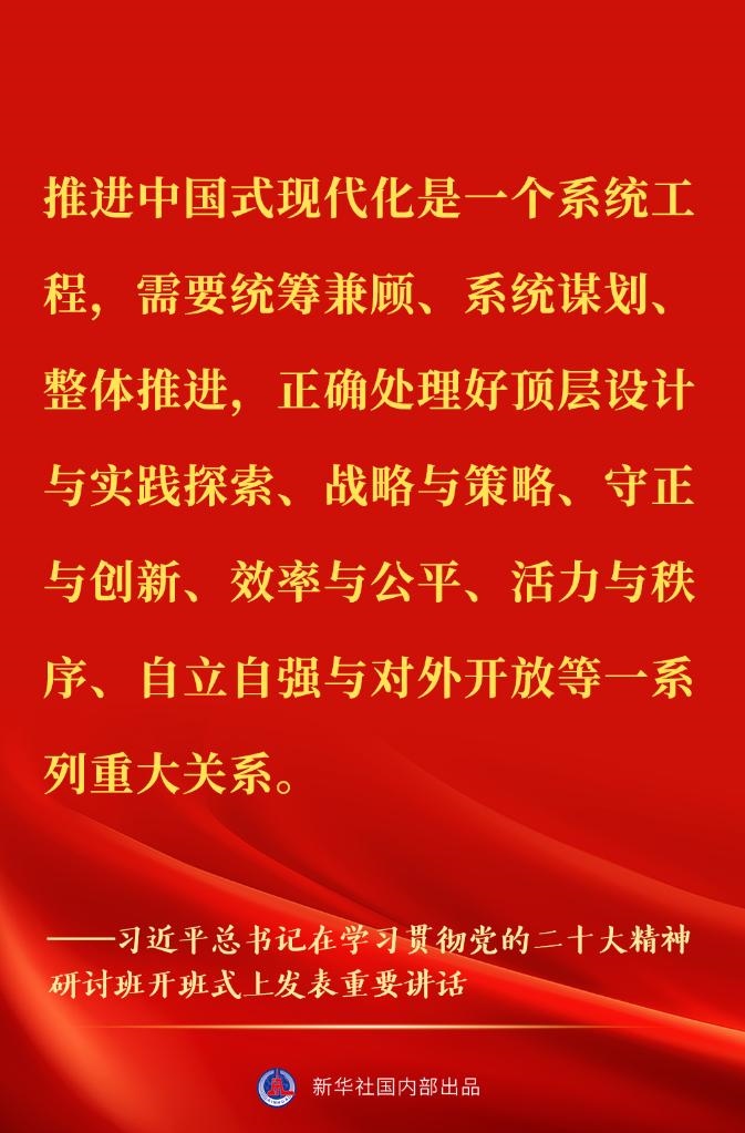 新進(jìn)中央委員會(huì)的委員、候補(bǔ)委員和省部級(jí)主要領(lǐng)導(dǎo)干部學(xué)習(xí)貫徹習(xí)近平新時(shí)代中國(guó)特色社會(huì)主義思想和黨的二十大精神研討班7日上午在中央黨校(國(guó)家行政學(xué)院)開班。中共中央總書記、國(guó)家主席、中央軍委主席習(xí)近平在開班式上發(fā)表重要講話。一起來(lái)看金句↓
