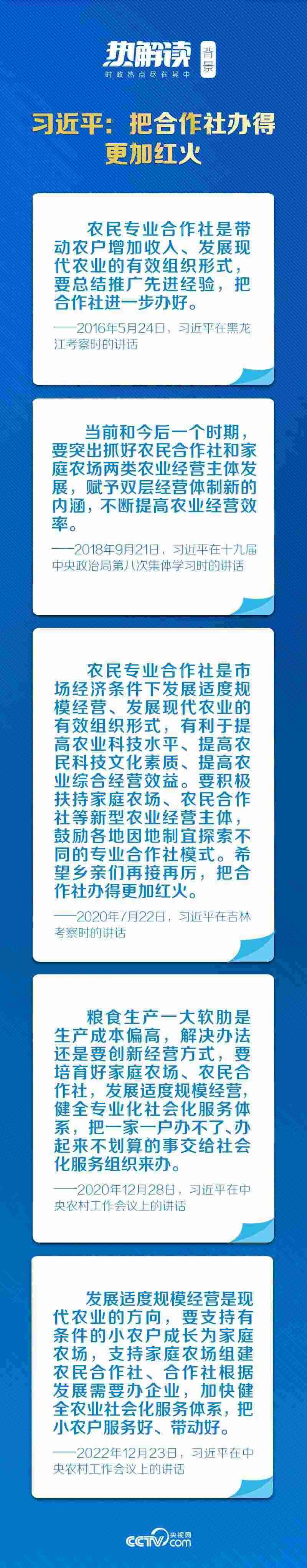 合作社是市場(chǎng)經(jīng)濟(jì)條件下發(fā)展適度規(guī)模經(jīng)營(yíng)和現(xiàn)代農(nóng)業(yè)的有效組織形式。黨的十八大以來(lái),總書記不止一次走進(jìn)合作社,關(guān)切農(nóng)業(yè)、農(nóng)村發(fā)展,思考中國(guó)特色的農(nóng)業(yè)現(xiàn)代化之路。