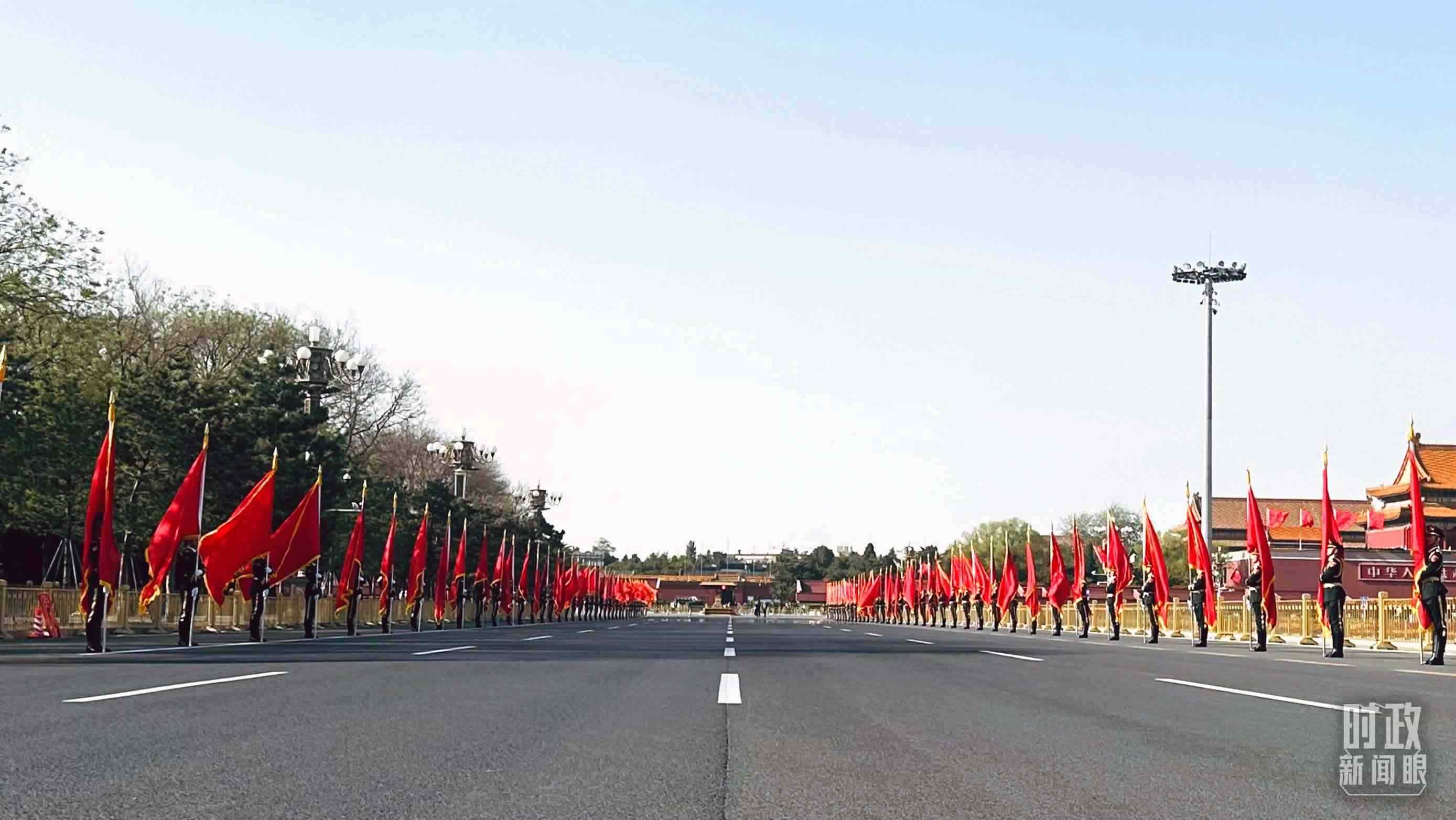 △長安街兩側(cè)懸掛起中巴兩國國旗。(總臺央視記者陸泓宇拍攝)