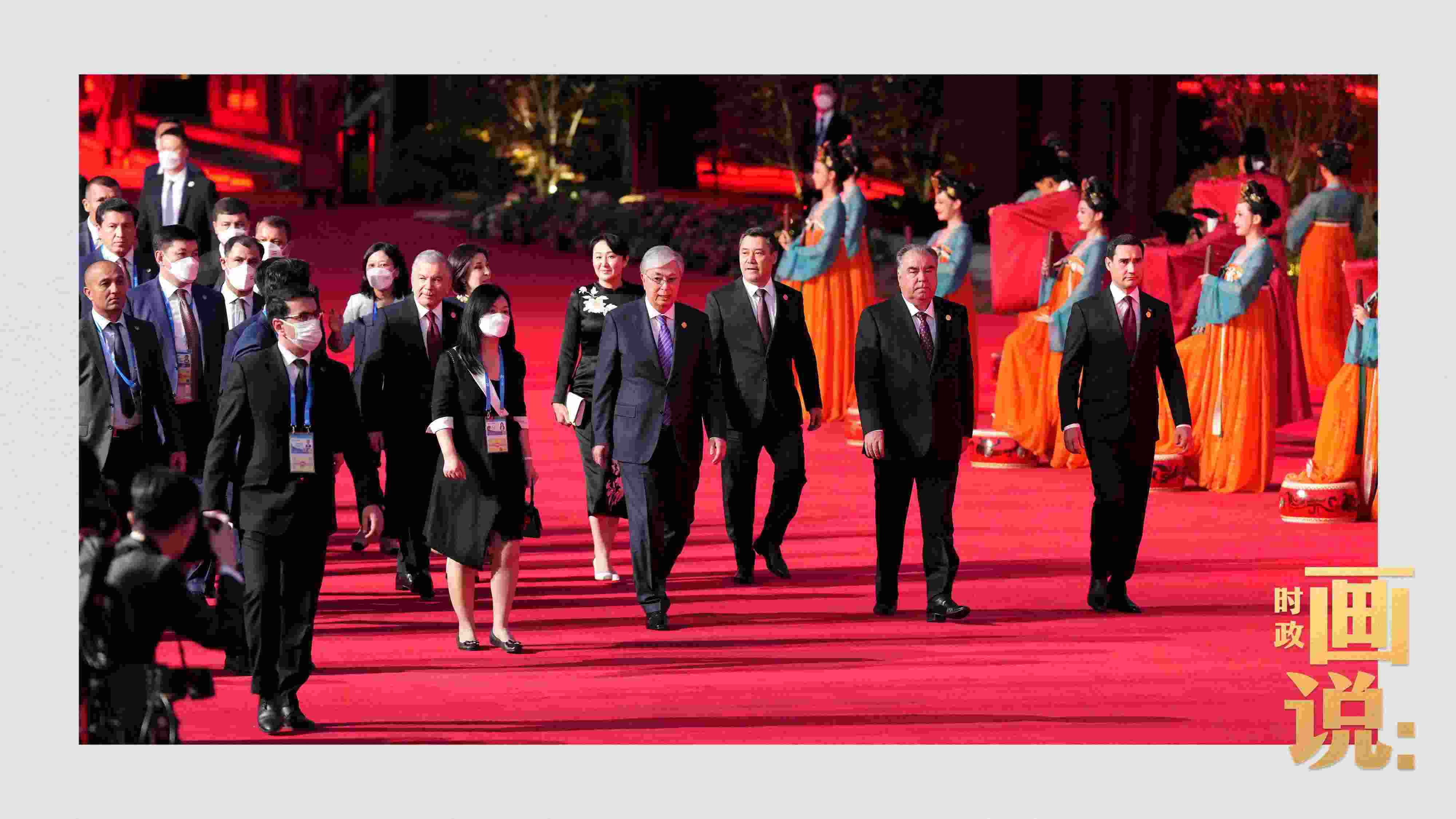 國(guó)家主席習(xí)近平和夫人彭麗媛5月18日晚在西安大唐芙蓉園舉行儀式,歡迎出席中國(guó)-中亞峰會(huì)的中亞五國(guó)領(lǐng)導(dǎo)人和夫人。