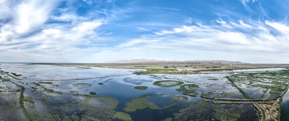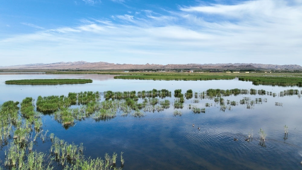 這是2023年6月4日拍攝的烏梁素海(無人機(jī)全景照片)。
