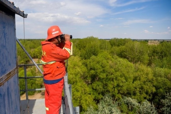 6月5日,臨河區(qū)國營新華林場護(hù)林員在開展巡護(hù)工作。新華社記者 李志鵬 攝