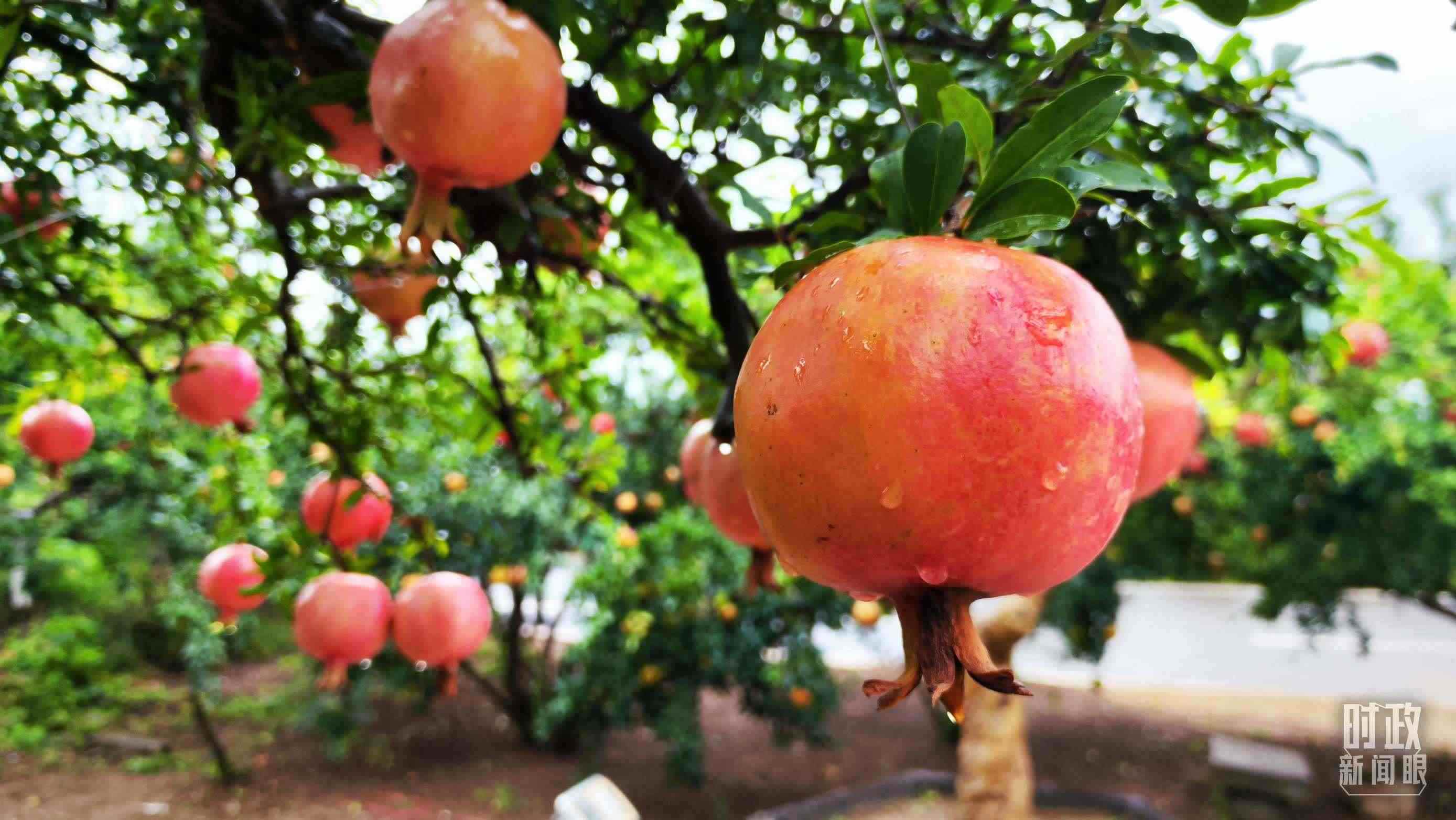 △一場(chǎng)秋雨過后,石榴更顯晶瑩。(總臺(tái)央視記者李輝、范一鳴拍攝)