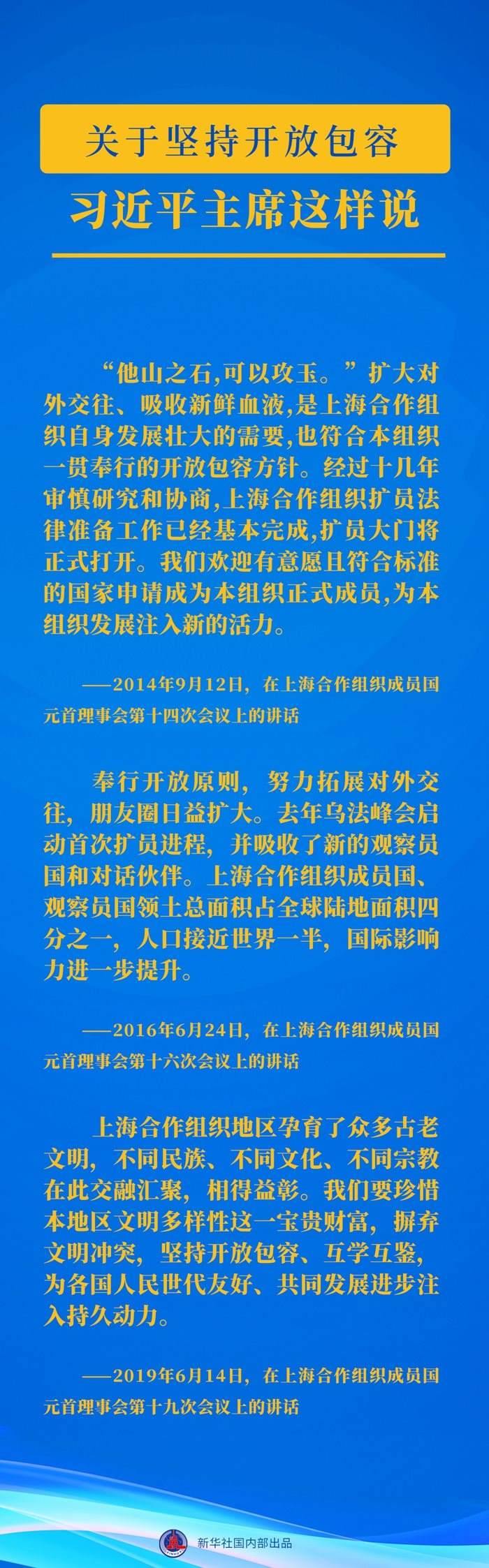 自2013年起,習(xí)近平主席已連續(xù)10年出席上合組織峰會(huì)并發(fā)表重要講話。習(xí)近平主席關(guān)于上合組織發(fā)展的這些重要論述,讓我們一起學(xué)習(xí)領(lǐng)悟↓