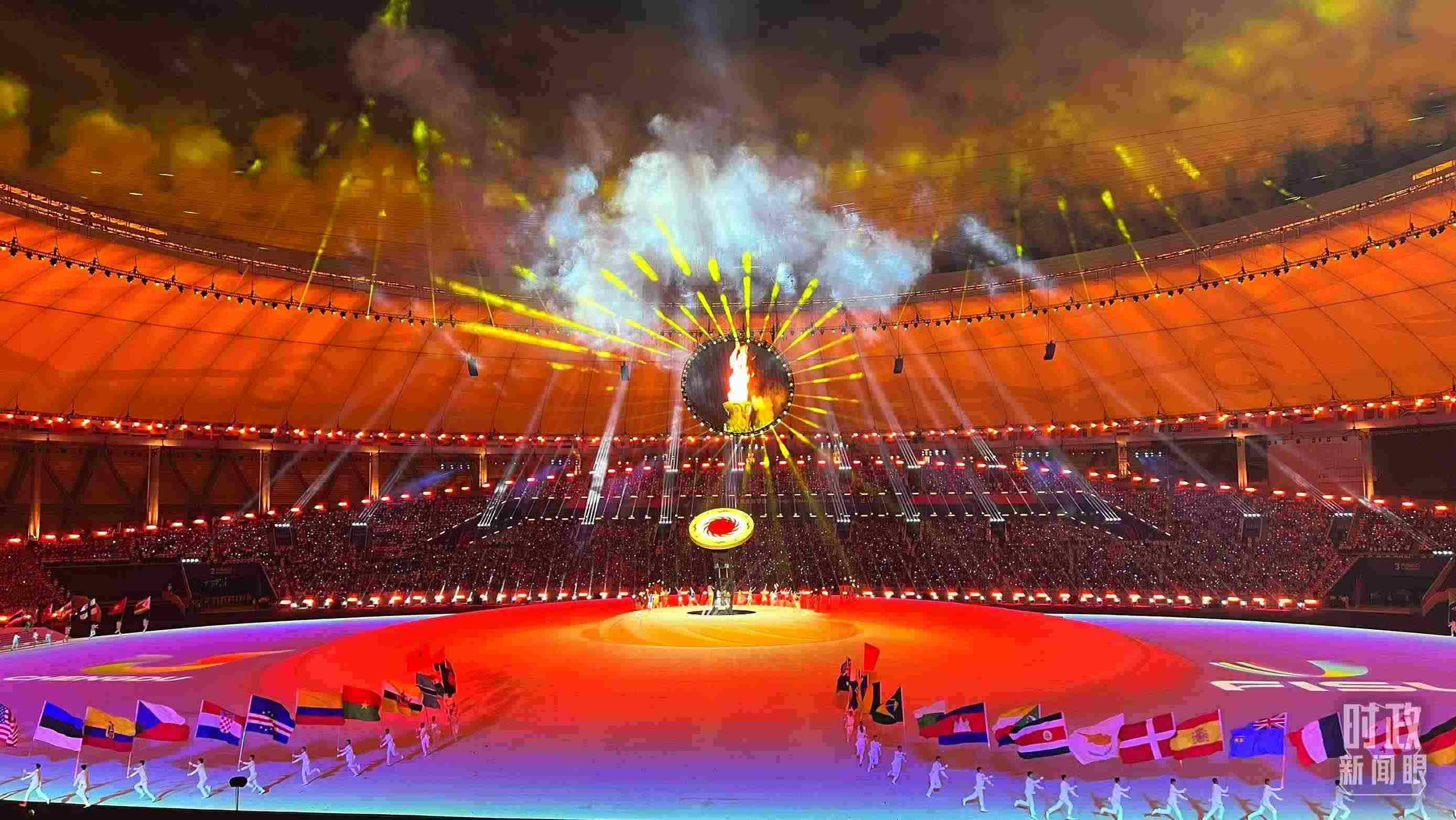 △成都大運會主火炬塔點燃。(總臺央視記者羅曉丹拍攝)