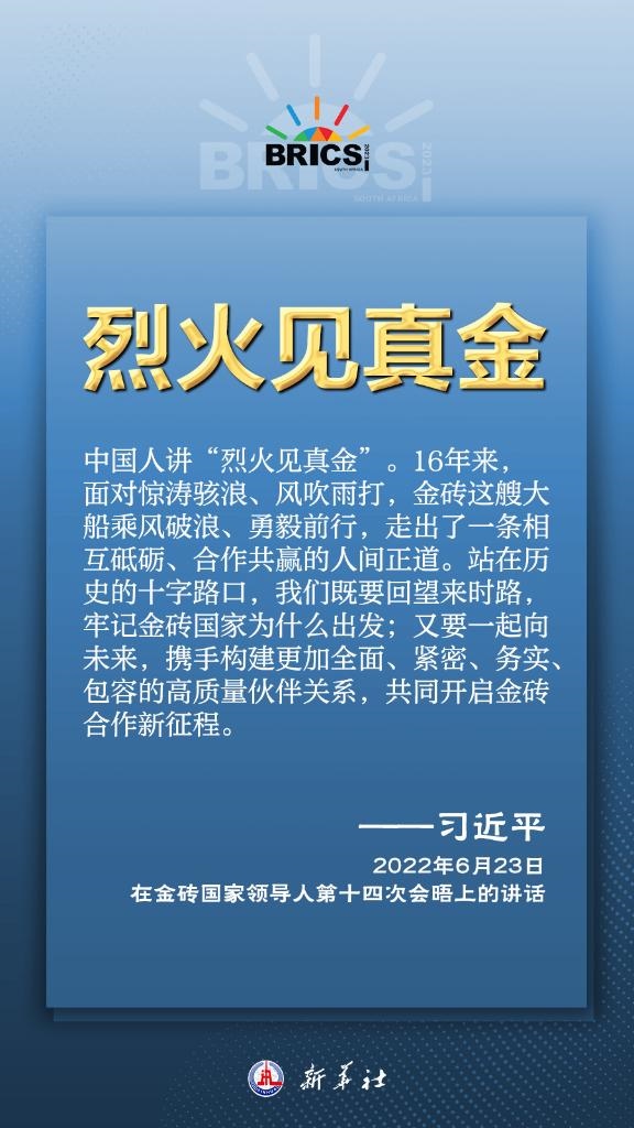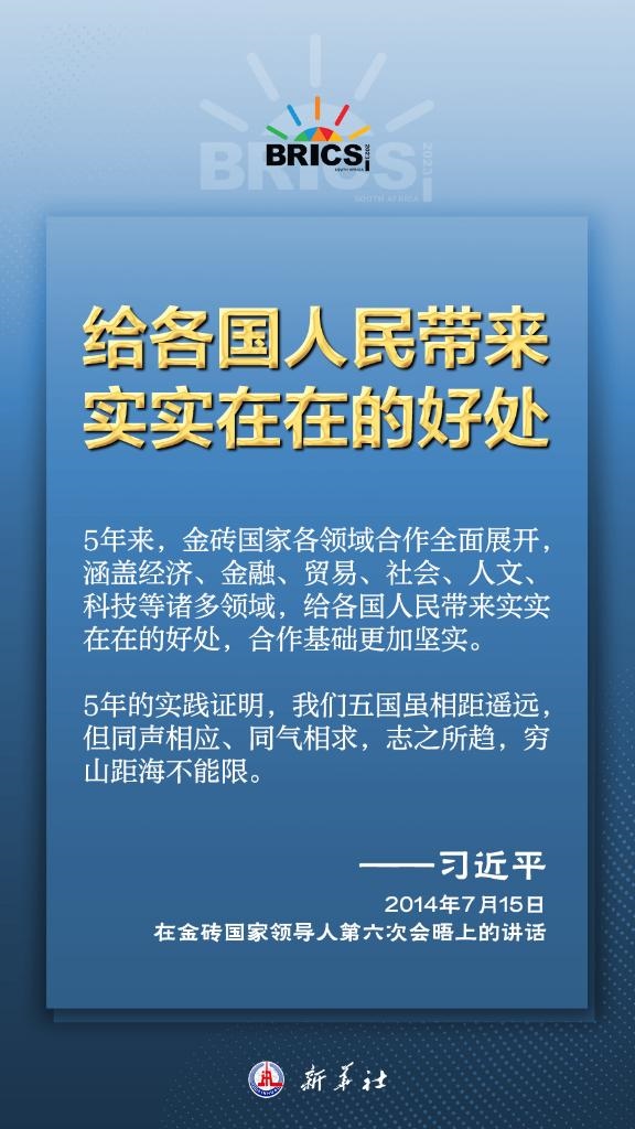 應南非共和國總統(tǒng)拉馬福薩邀請,國家主席習近平將于8月21日至24日出席在南非約翰內(nèi)斯堡舉行的金磚國家領導人第十五次會晤并對南非進行國事訪問。在南非期間,習近平還將同拉馬福薩共同主持中非領導人對話會。過去十年來,習近平主席出席了全部十次金磚國家領導人會晤并發(fā)表一系列重要講話,為推動金磚國家合作行穩(wěn)致遠提供中國智慧、注入強勁動力。