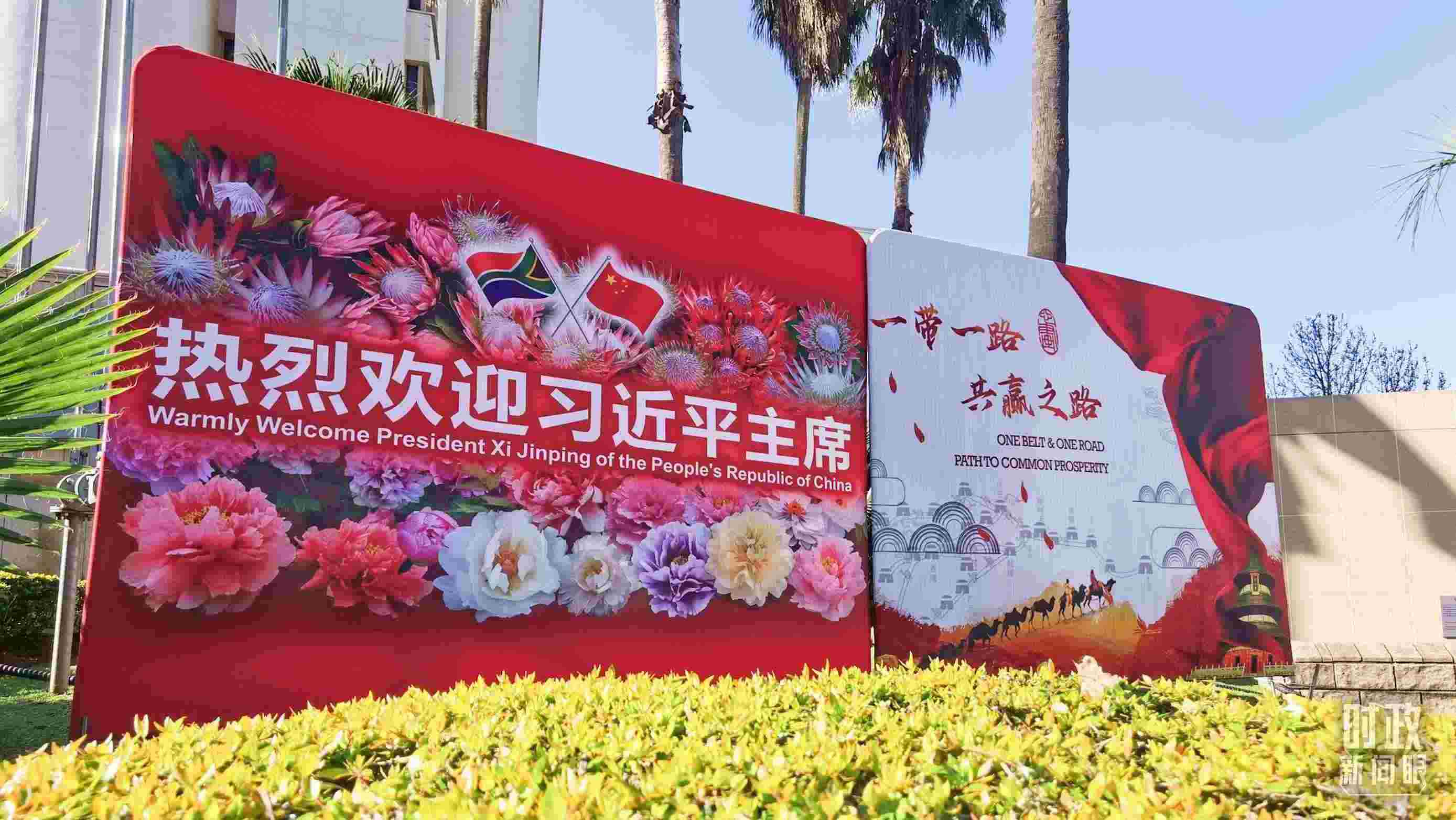△約翰內(nèi)斯堡街道邊的標(biāo)語(yǔ)牌。(總臺(tái)央視記者曹亞星拍攝)