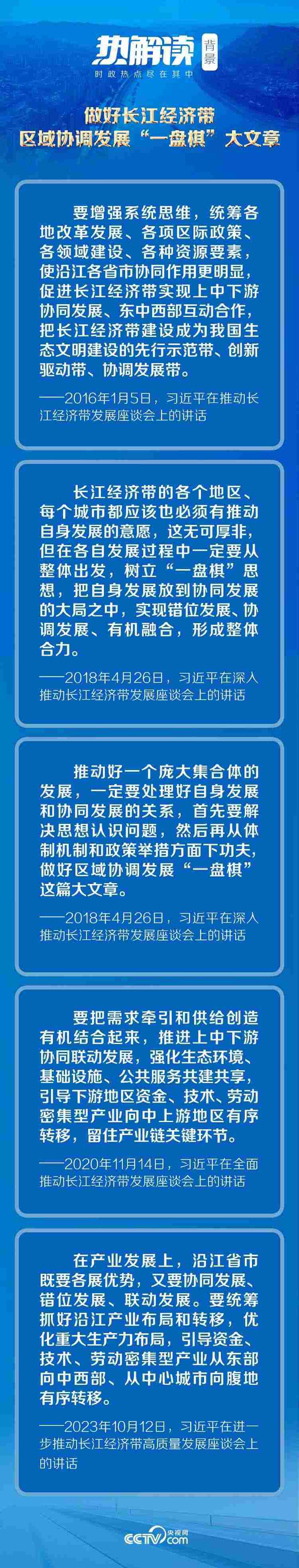沿江省市如何把自身發(fā)展投入?yún)f(xié)同發(fā)展大局,實(shí)現(xiàn)錯(cuò)位發(fā)展、協(xié)調(diào)發(fā)展、有機(jī)融合,形成整體合力?總書記在此次座談會上對沿江省市提出16字鮮明要求——“省際共商、生態(tài)共治、全域共建、發(fā)展共享”。