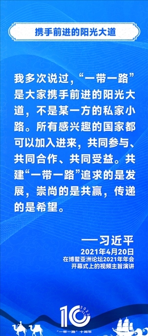 10年前,習近平主席提出共建“絲綢之路經(jīng)濟帶”和“21世紀海上絲綢之路”,即共建“一帶一路”倡議。過去10年來,習近平主席在多個場合發(fā)表講話和署名文章,為世界描繪了共建“一帶一路”互聯(lián)互通、合作共贏的宏偉藍圖。