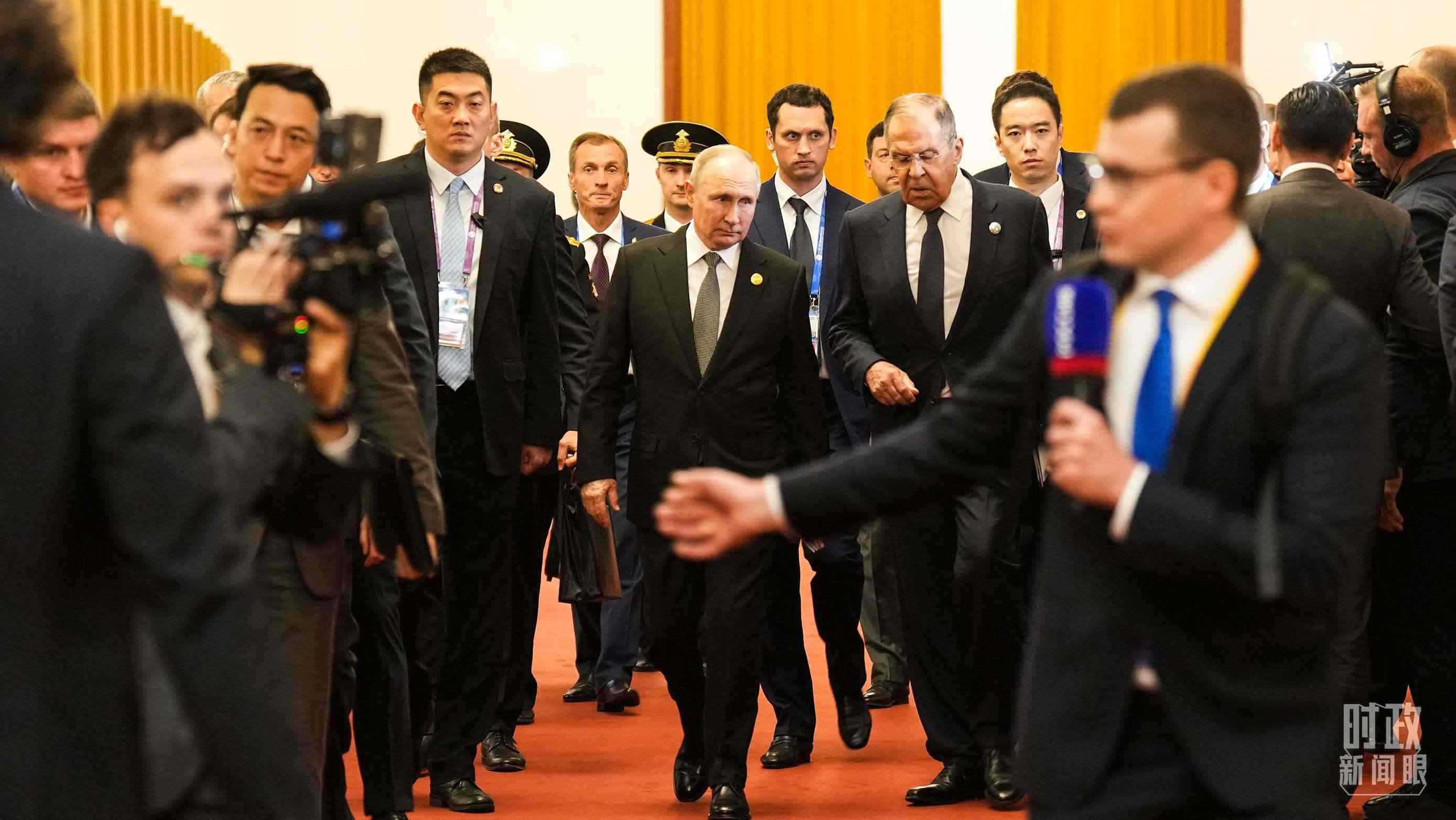 △人民大會(huì)堂,俄羅斯總統(tǒng)普京走向會(huì)見(jiàn)廳。(總臺(tái)國(guó)廣記者李晉拍攝)