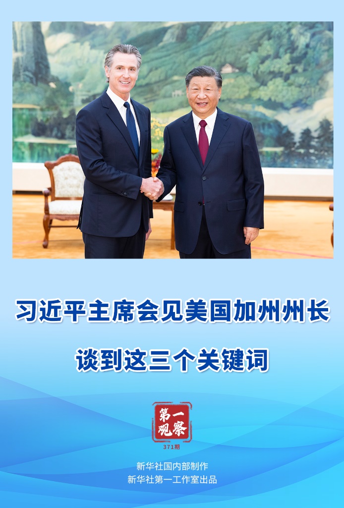 加利福尼亞,美國西海岸重要門戶,經(jīng)濟(jì)總量居全美各州首位,在對華友好交往和務(wù)實(shí)合作中長期走在全美前列。紐森此次于10月23日至29日訪華,是2020年以來第一位來訪的美國州長。在中美關(guān)系呈現(xiàn)止跌企穩(wěn)積極勢頭的關(guān)鍵時刻,習(xí)近平主席會見美國加州州長,備受中美兩國和國際社會關(guān)注。習(xí)近平主席談到的三個關(guān)鍵詞,飽含深意。