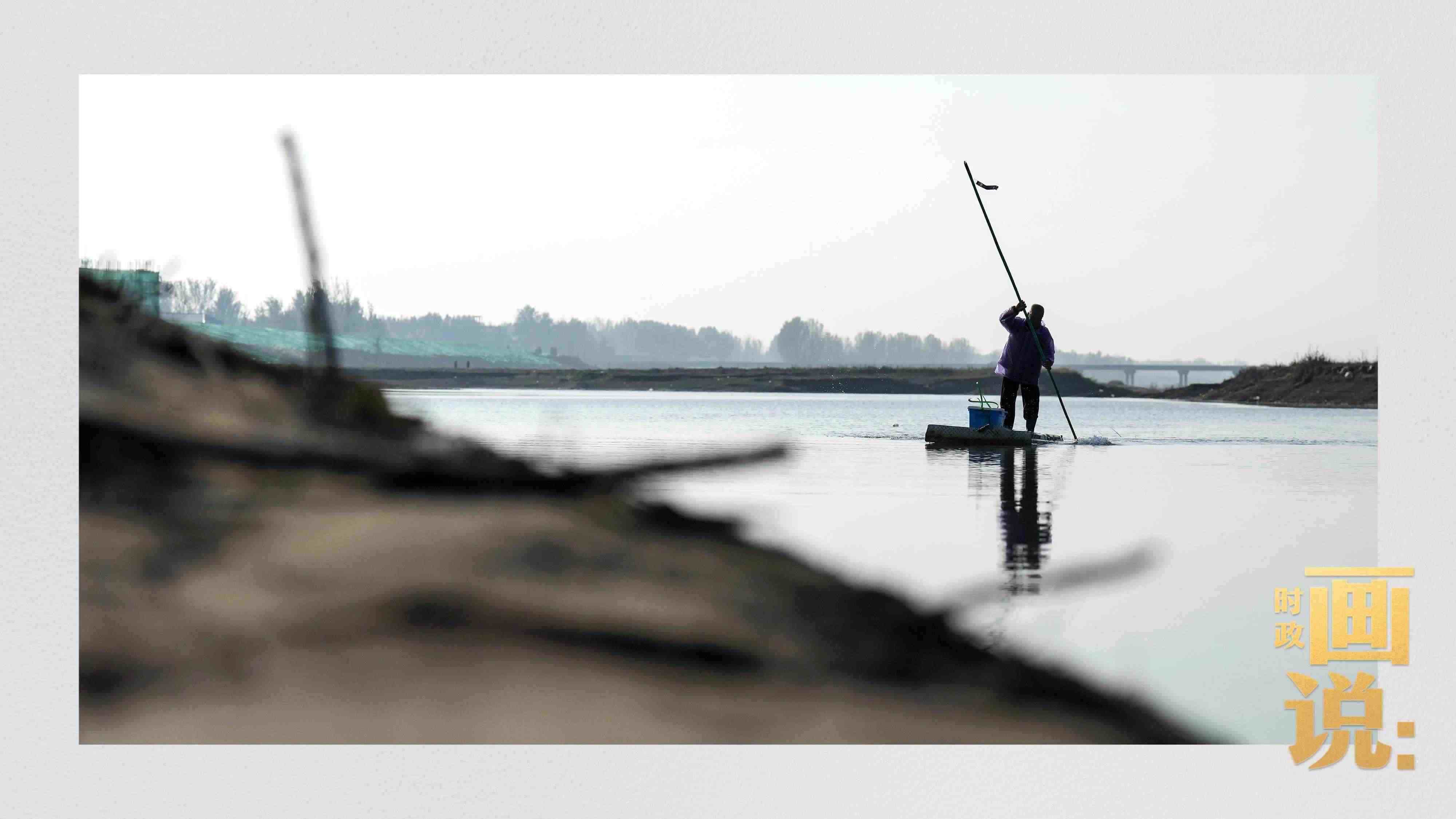 △白溝河上的漁民在晨霧里尋找漁獲。涿州。