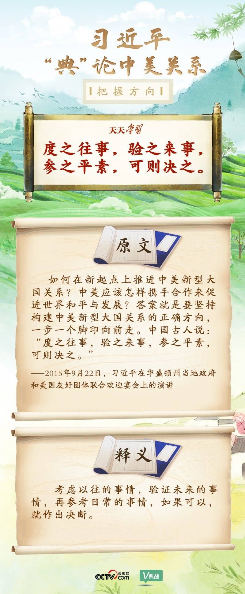 黨的十八大以來(lái),習(xí)近平主席就中美關(guān)系發(fā)表了一系列重要講話。他站在時(shí)代高度分析、研判中美關(guān)系現(xiàn)狀及發(fā)展趨勢(shì),并引經(jīng)據(jù)典為發(fā)展中美關(guān)系指出正確方向。這些論述蘊(yùn)含深刻的戰(zhàn)略思維和政治智慧,具有重大現(xiàn)實(shí)意義和深遠(yuǎn)歷史意義。央視網(wǎng)《天天學(xué)習(xí)》與您一起深刻領(lǐng)會(huì)。