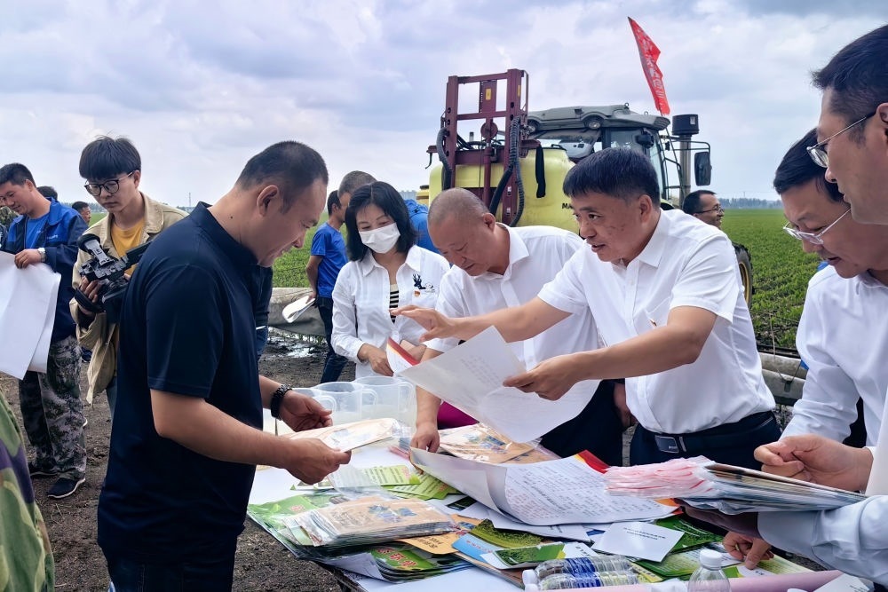 黑龍江省農(nóng)業(yè)農(nóng)村廳種植業(yè)管理處工作人員在哈爾濱市雙城區(qū)地頭,向農(nóng)民發(fā)放科學用農(nóng)藥資料(2023年6月11日攝)。學習貫徹習近平新時代中國特色社會主義思想主題教育工作會議召開以來,黑龍江省農(nóng)業(yè)農(nóng)村廳種植業(yè)管理處將理論學習與實際工作相結(jié)合,深入“田間地頭”調(diào)查研究、深入推進“千萬噸糧食增產(chǎn)計劃”,助力黑龍江省當好維護國家糧食安全“壓艙石”,將主題教育成果融入到維護國家糧食安全的具體實踐中。新華社發(fā)
