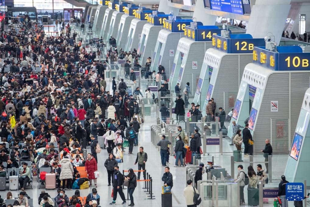??2024年2月17日,旅客在杭州東站候車(chē)大廳等待乘坐列車(chē)。新華社記者 江漢 攝