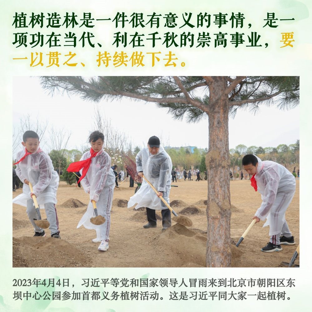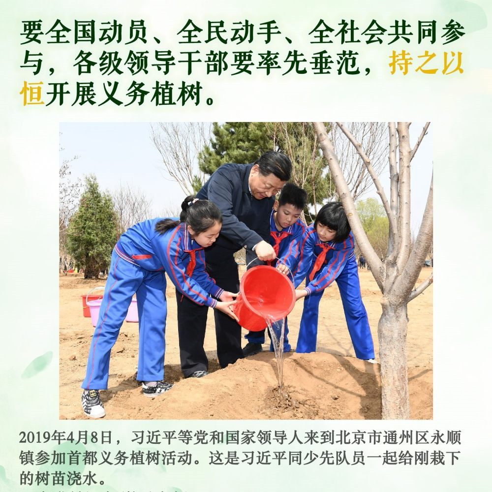 身體力行,持之以恒。此后的11個春天,無論晴雨,總書記都抽出時間加入植綠隊伍,并對國土綠化事業(yè)提出殷殷囑托。堅持,是12年來總書記反復強調(diào)的關(guān)鍵內(nèi)涵。