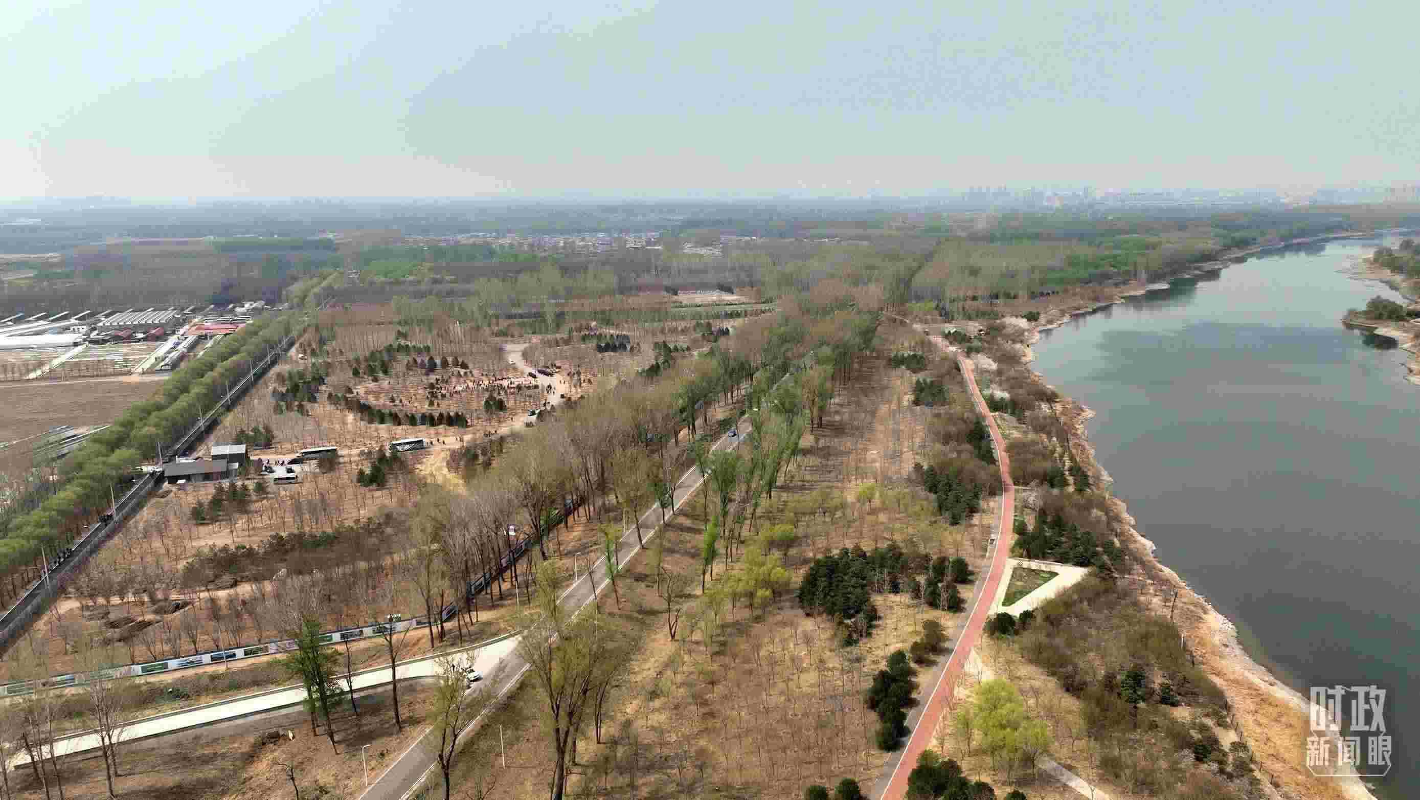 △遠眺北京市通州區(qū)潞城鎮(zhèn)植樹點。(總臺央視記者劉岳拍攝)