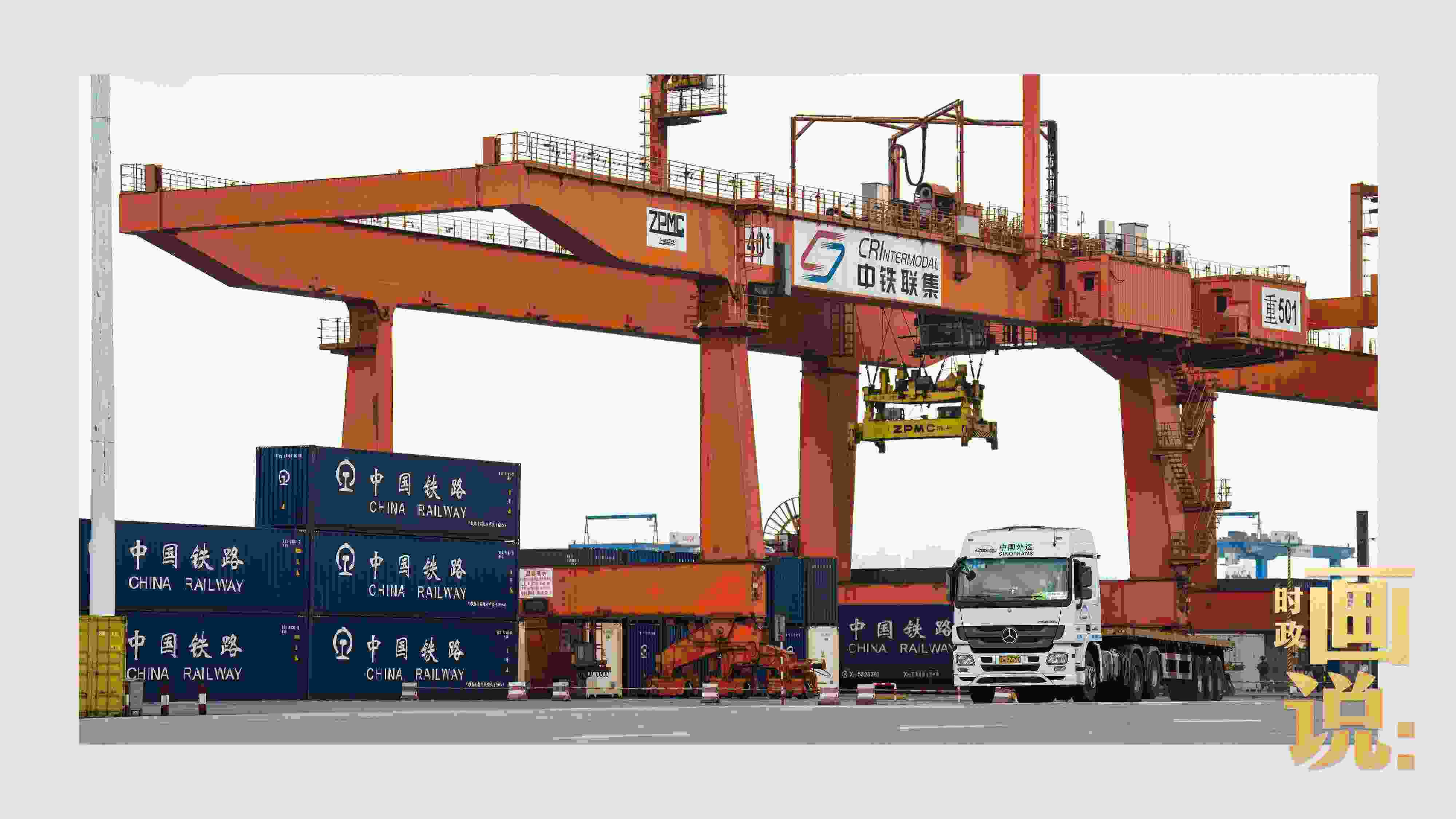 △重慶鐵路集裝箱中心站內(nèi),重型貨車等待裝箱。