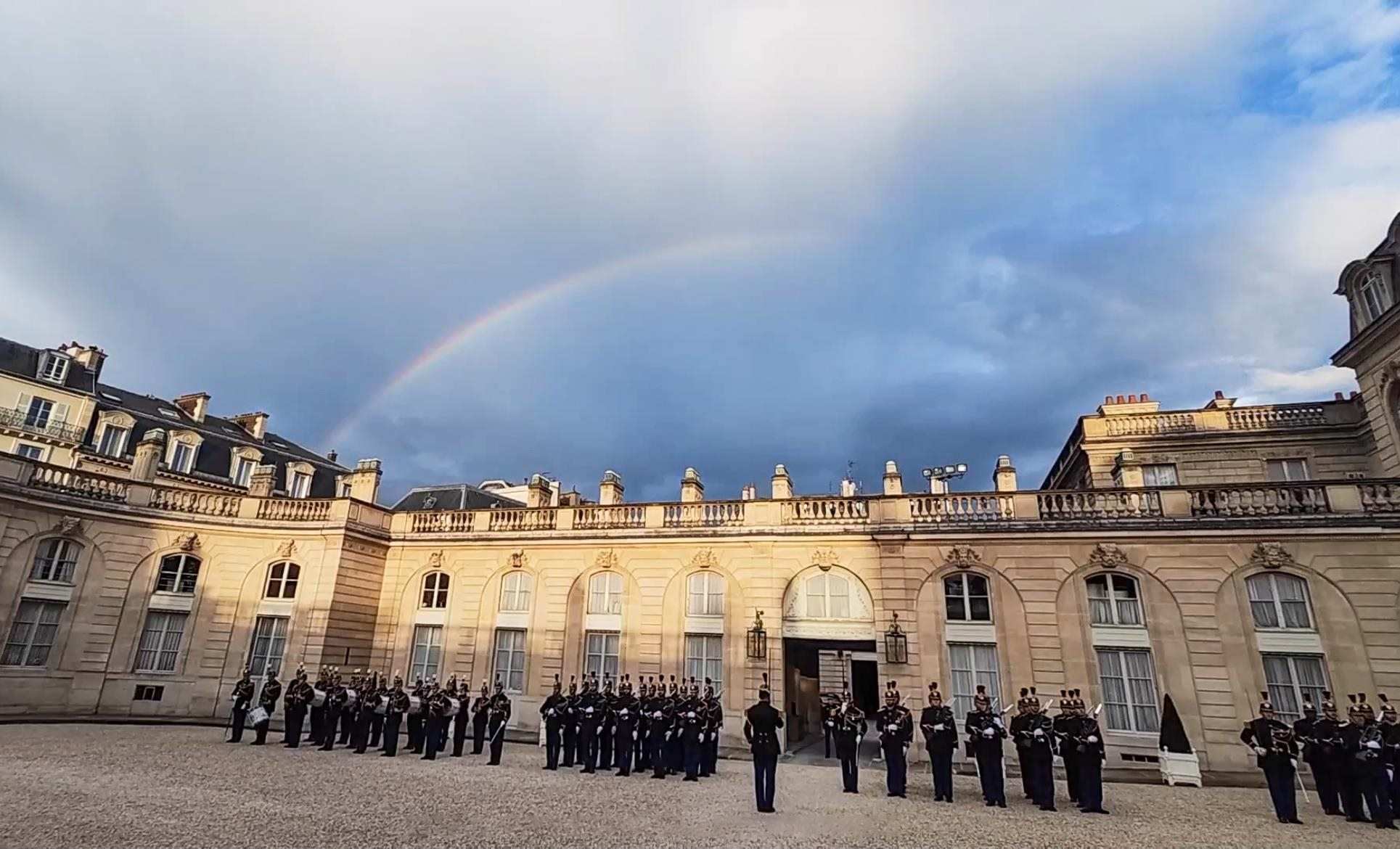 當(dāng)?shù)貢r(shí)間5月6日晚,習(xí)近平主席在巴黎出席馬克龍總統(tǒng)舉行的盛大歡迎宴會。宴會前,愛麗舍宮上空出現(xiàn)彩虹。彩虹連接著東西方。塞納河畔,正寫下中法兩國“雙向奔赴”的新故事。