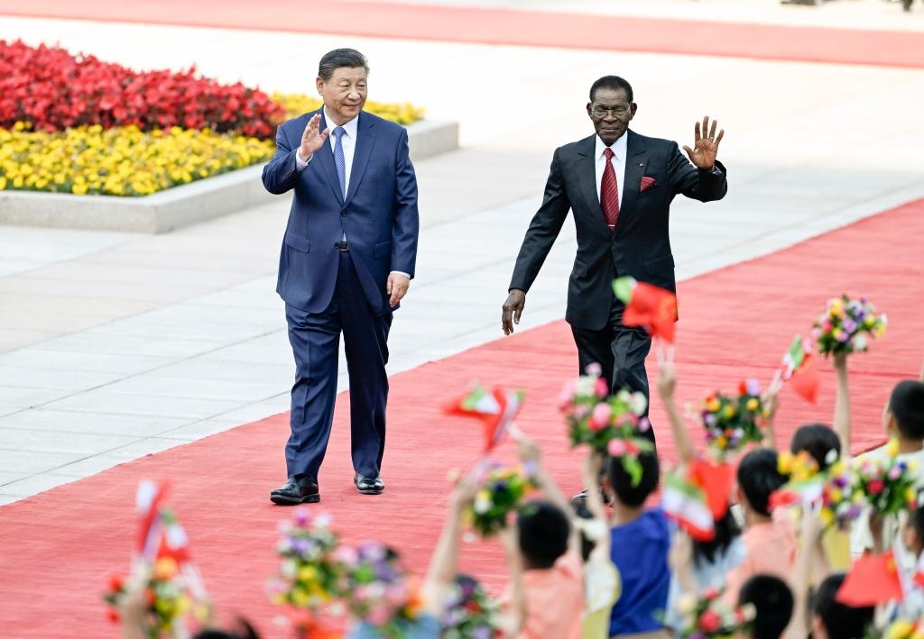 ??5月28日下午,國家主席習(xí)近平在北京人民大會堂同來華進(jìn)行國事訪問的赤道幾內(nèi)亞總統(tǒng)奧比昂舉行會談。這是會談前,習(xí)近平在人民大會堂東門外廣場為奧比昂舉行歡迎儀式。新華社記者 殷博古 攝