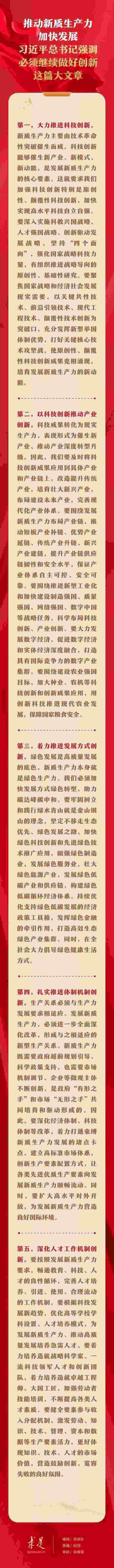 6月1日出版的第11期《求是》雜志刊發(fā)習(xí)近平總書記重要文章《發(fā)展新質(zhì)生產(chǎn)力是推動(dòng)高質(zhì)量發(fā)展的內(nèi)在要求和重要著力點(diǎn)》。在這篇重要文章中,習(xí)近平總書記從科技創(chuàng)新、產(chǎn)業(yè)創(chuàng)新、發(fā)展方式創(chuàng)新、體制機(jī)制創(chuàng)新、人才工作機(jī)制創(chuàng)新等五個(gè)方面,對(duì)推動(dòng)新質(zhì)生產(chǎn)力加快發(fā)展提出明確要求。