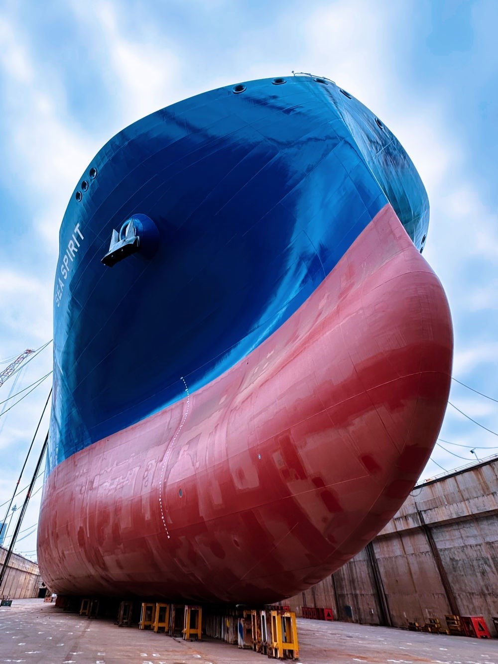 6月的大連,碧海流云。中國船舶集團(tuán)大連船舶重工集團(tuán)有限公司(簡稱“中國船舶大連造船”)一艘正在建造的17.5萬立方米LNG運(yùn)輸船停靠在碼頭,400多名工人上上下下,正在進(jìn)行貨物圍護(hù)系統(tǒng)的施工。